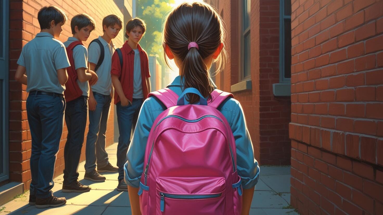 Er was maar één weg naar het schoolplein en die werd geblokkeerd door een groep jongens die er in mijn ogen als 6-jarige erg groot uitzagen.